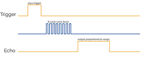 In order to generate the ultrasound you first need to clear the Trig and than put it on a High State for 10 µs. That will send out an 8 cycle sonic burst which will travel at the speed sound and it will be received in the Echo pin. The Echo pin will output the time in microseconds the sound wave traveled.